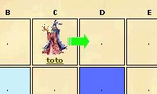 Case occupée, libérée par un déplacement : déplacement vers une case occupée, dont l'occupant réussit son déplacement. ![]() ![]() |